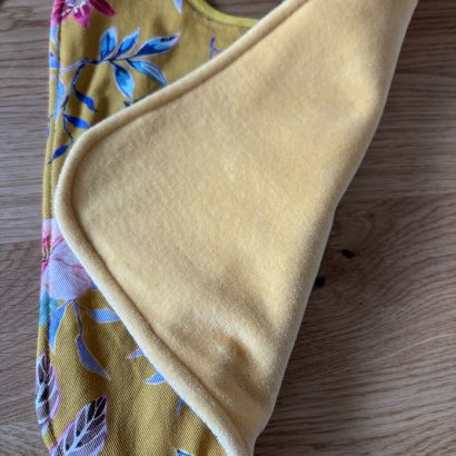 - Face arrière : velours lisse jaune