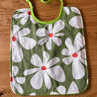 Un bavoir généreux, pratique et joli, qui laisse bébé explorer les saveurs… sans stress pour les parents.