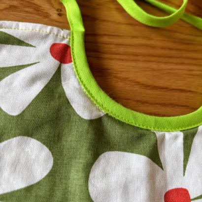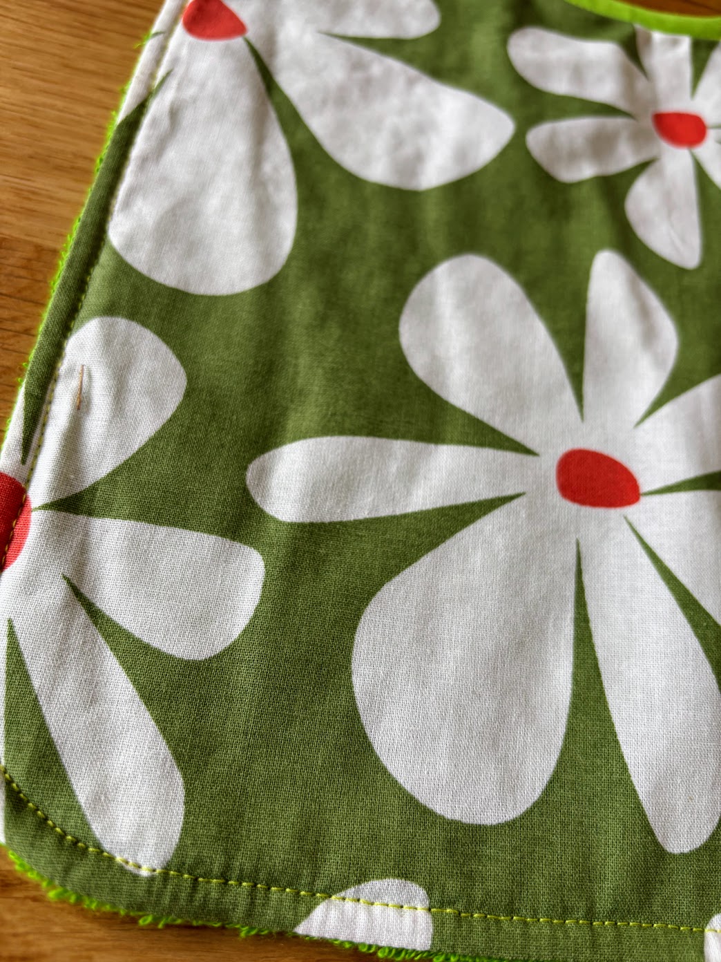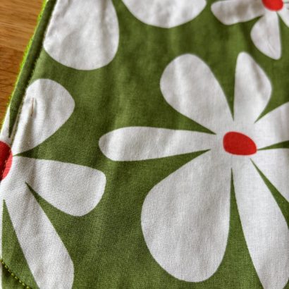 • Face avant : coton imprimé grandes fleurs blanches sur fond vert