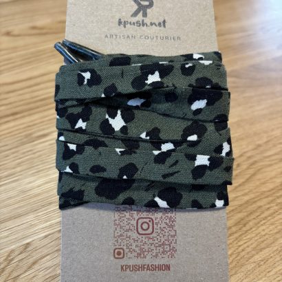 Ces lacets en tissu Ă  motif lĂ©opard sur fond kaki apportent juste ce qu’il faut d’audace Ă  tes chaussures. Graphiques mais faciles Ă  assortir, ils twistent une paire classique en un clin d’Ɠil, sans en faire trop.