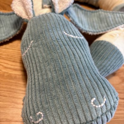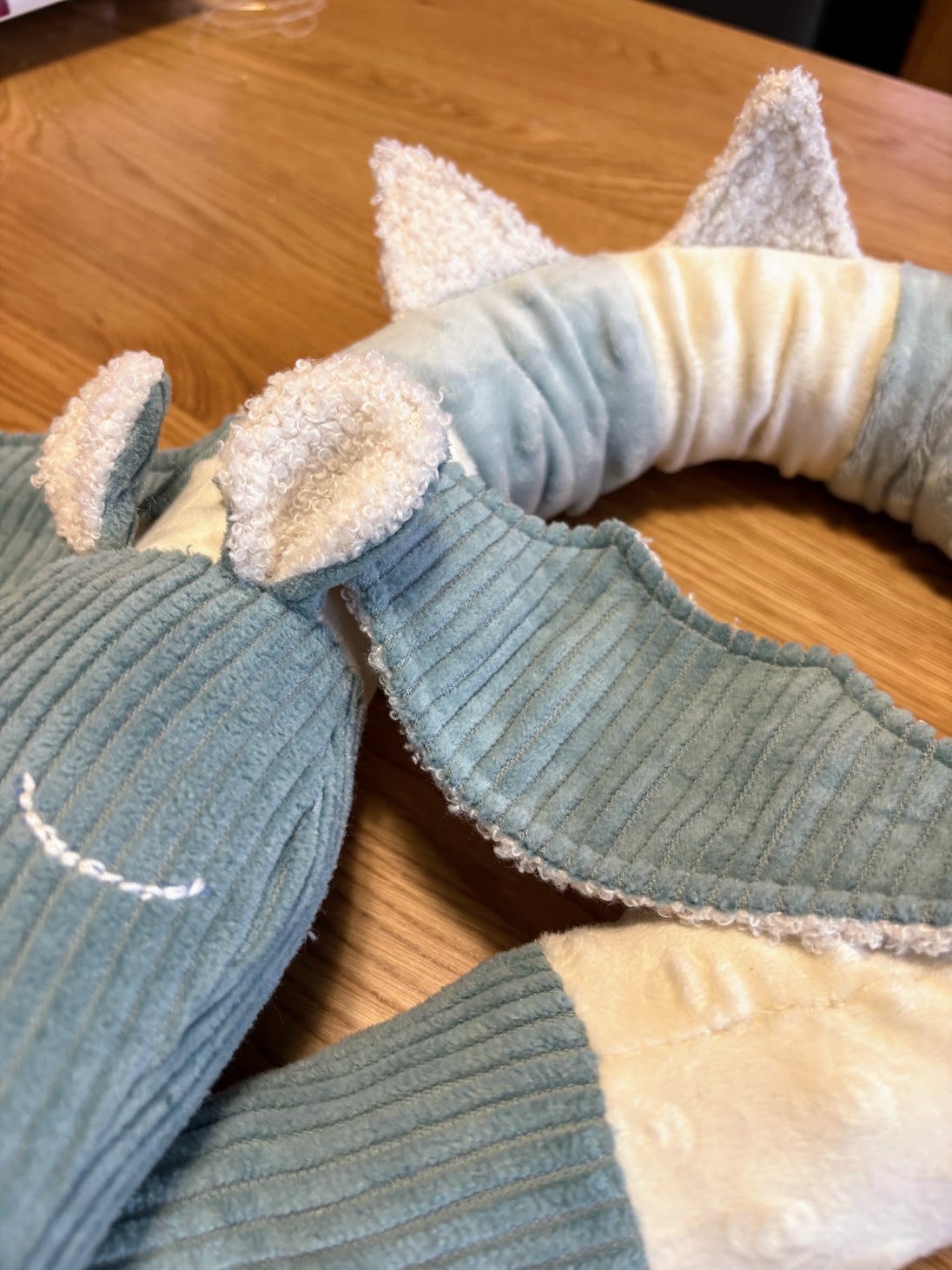 Ce dragon en peluche d’environ 1 mètre est une véritable invitation aux câlins et à l’imaginaire. Confectionné à la main, il associe un velours côtelé tout doux et un velours minky à des touches de bouclette moelleuse, pour une texture riche, réconfortante et agréable au toucher.