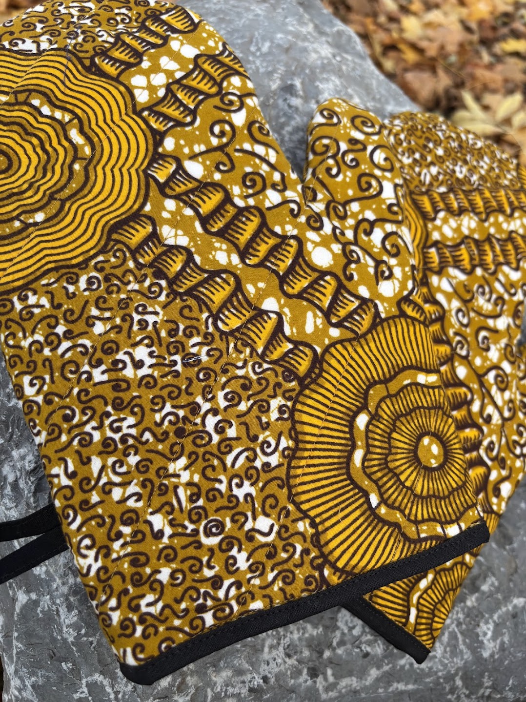 Cette paire de maniques en wax africain apportera une touche colorée, chaleureuse et originale à votre cuisine. Entièrement faite main, elle allie esthétique, praticité et savoir-faire artisanal.