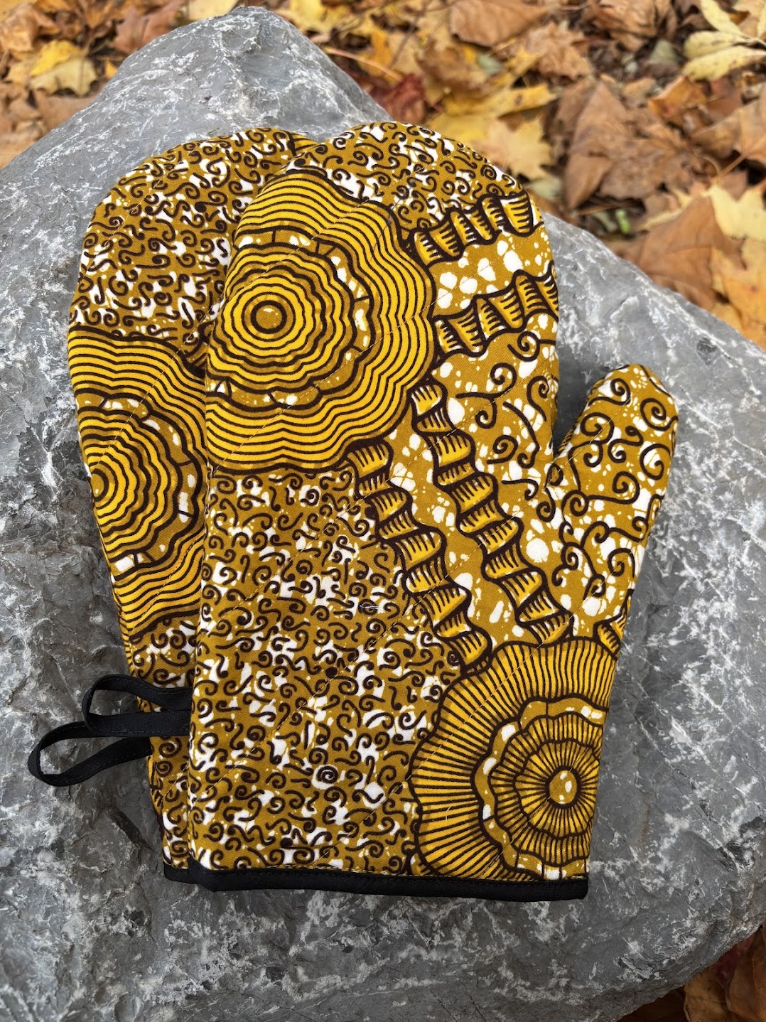 Avec leurs motifs graphiques jaunes et noirs, ces maniques prouvent qu’on peut sortir un plat brûlant sans perdre le style (ni les doigts) 🔥😉