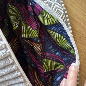 • Fermeture zippée YKK (robuste) avec allonge de curseur dans le même tissus fleuri que la doublure.
