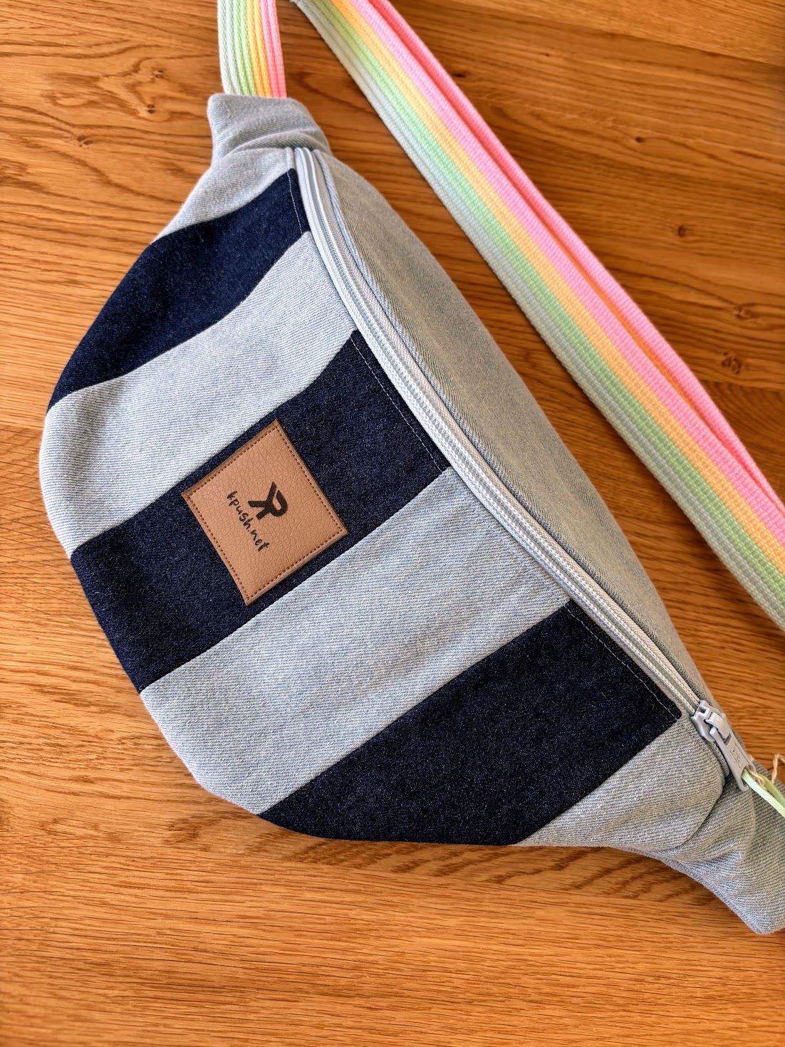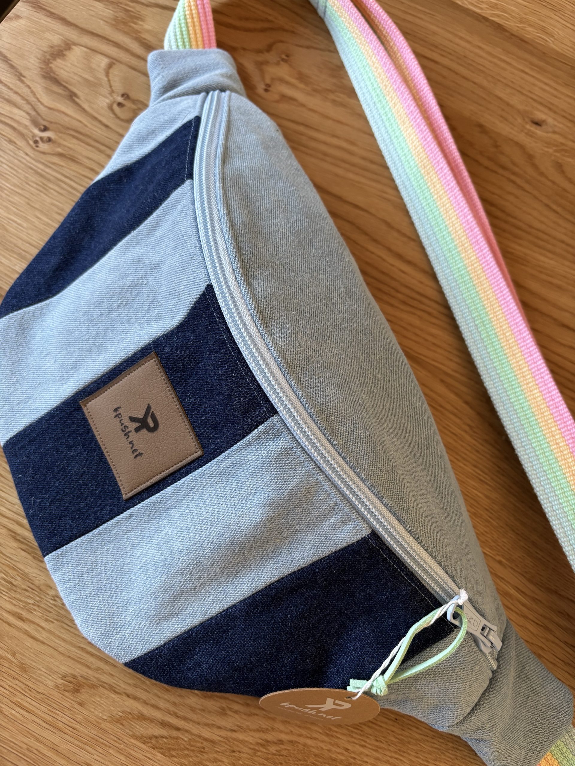 Cette banane format maxi en patchwork de jeans est pensée pour celles et ceux qui aiment allier style, fonctionnalité et singularité. Chaque pièce est entièrement réalisée à la main à Bruxelles et il n’en existe pas deux identiques : choisir cette banane, c’est porter une création vraiment unique.