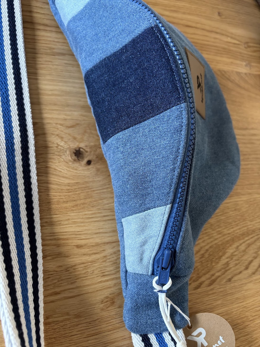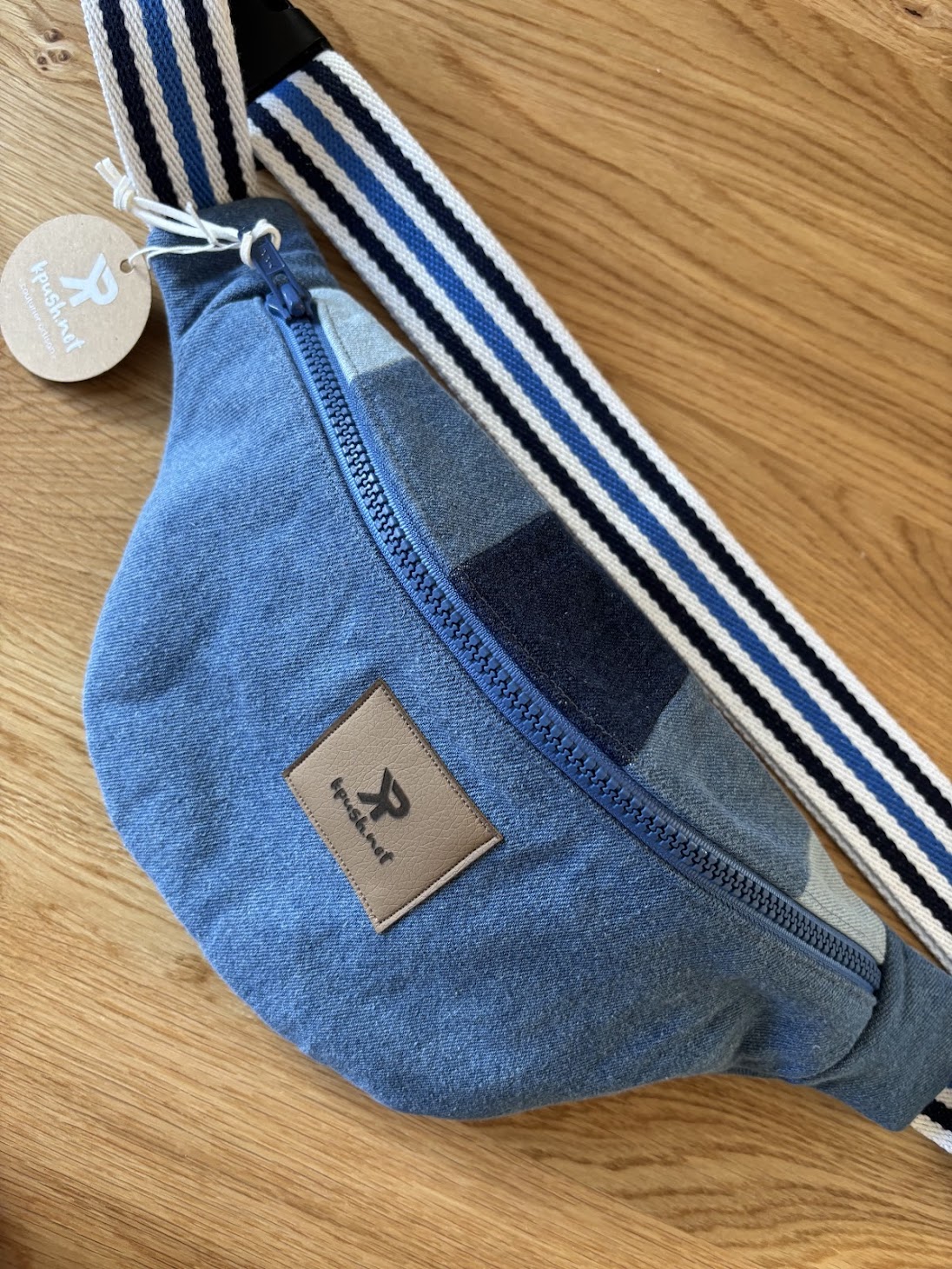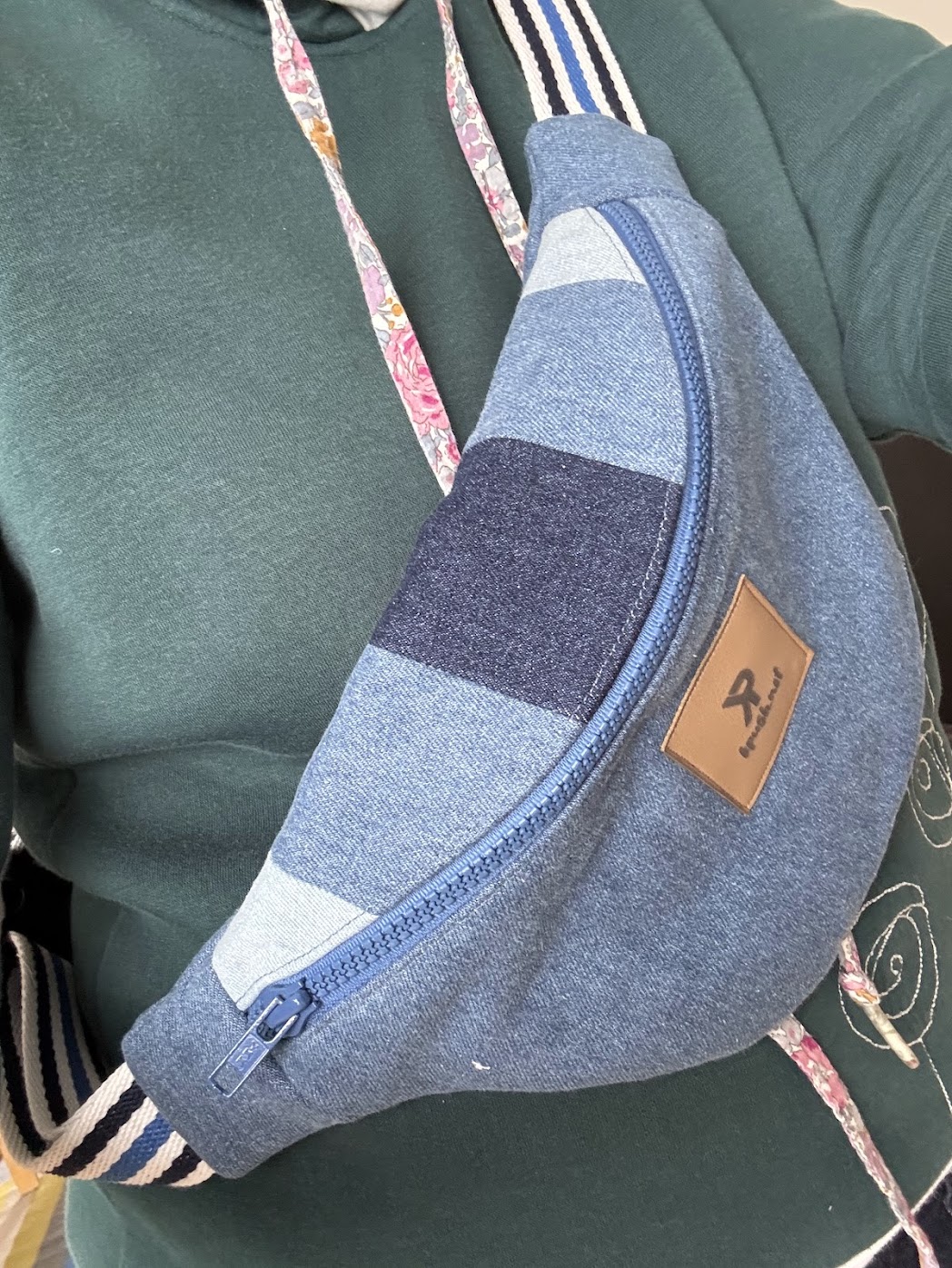 Cette banane en patchwork de jeans est une pièce compacte, légère et ultra stylée, idéale pour garder l’essentiel à portée de main. Comme toutes les bananes de cette collection, elle est entièrement unique : il n’en existe pas deux pareilles. Choisir celle-ci, c’est affirmer son style avec une création que personne d’autre ne portera, tout en restant discret. Un indispensable du quotidien.