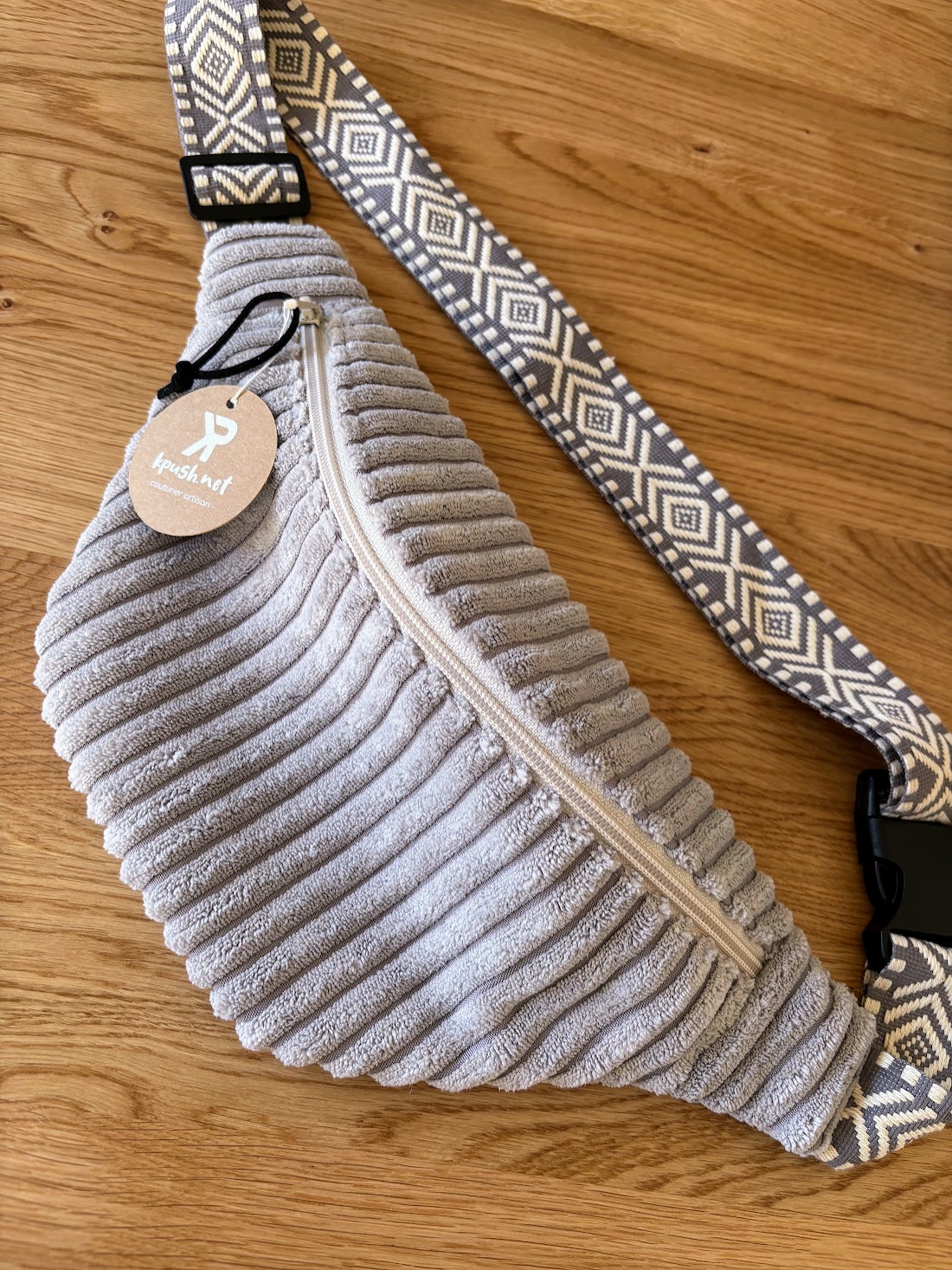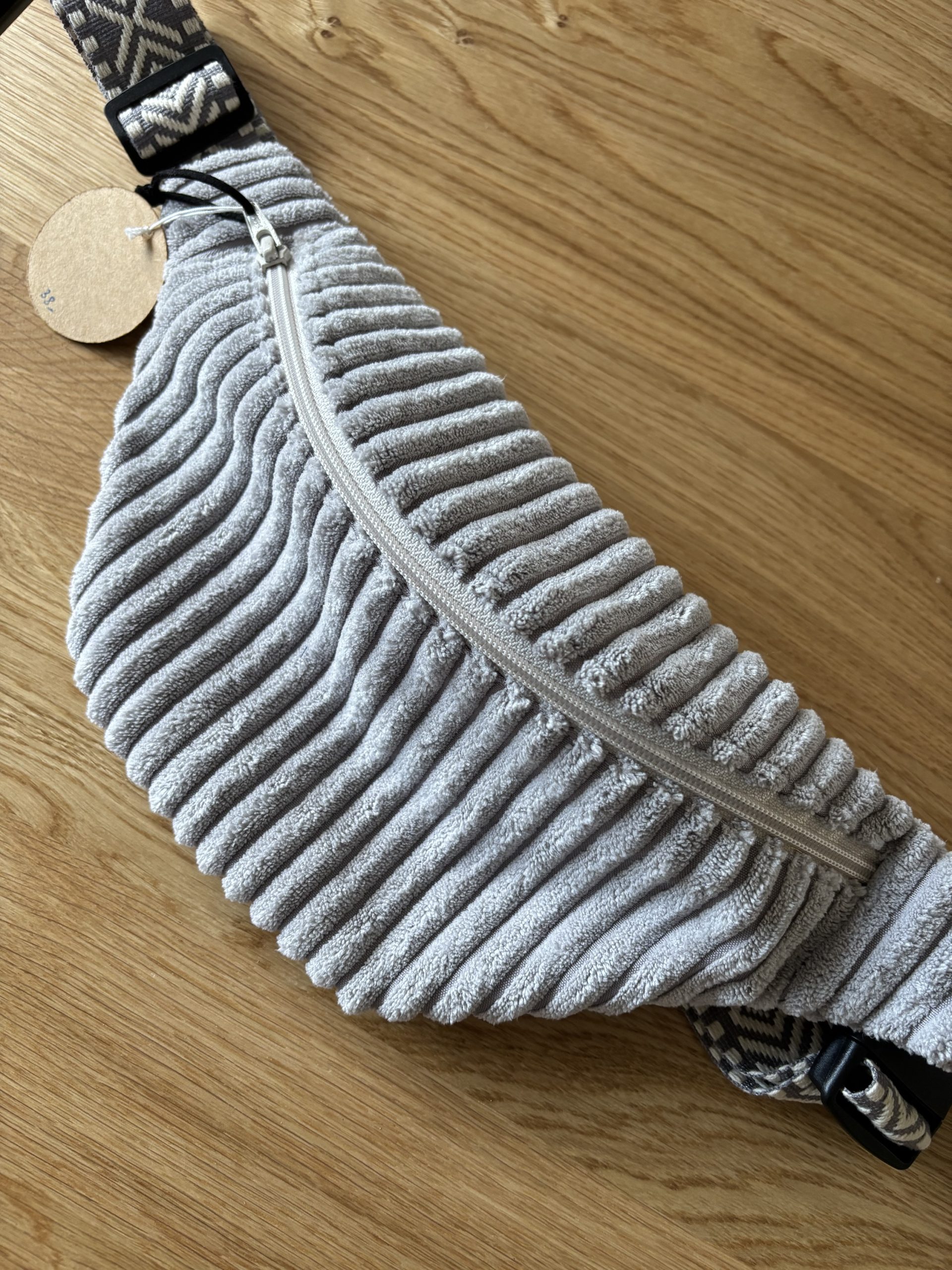 Sa sangle en coton au motif ethnique, réglable, permet de la porter aussi bien à la taille qu’en bandoulière, pour s’adapter à tous les moments du quotidien. Pratique et confortable, La Sereine accompagne vos journées avec douceur, sans jamais se faire oublier.