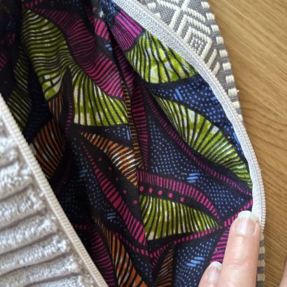 - Doublure intérieure en wax coloré à motif feuilles