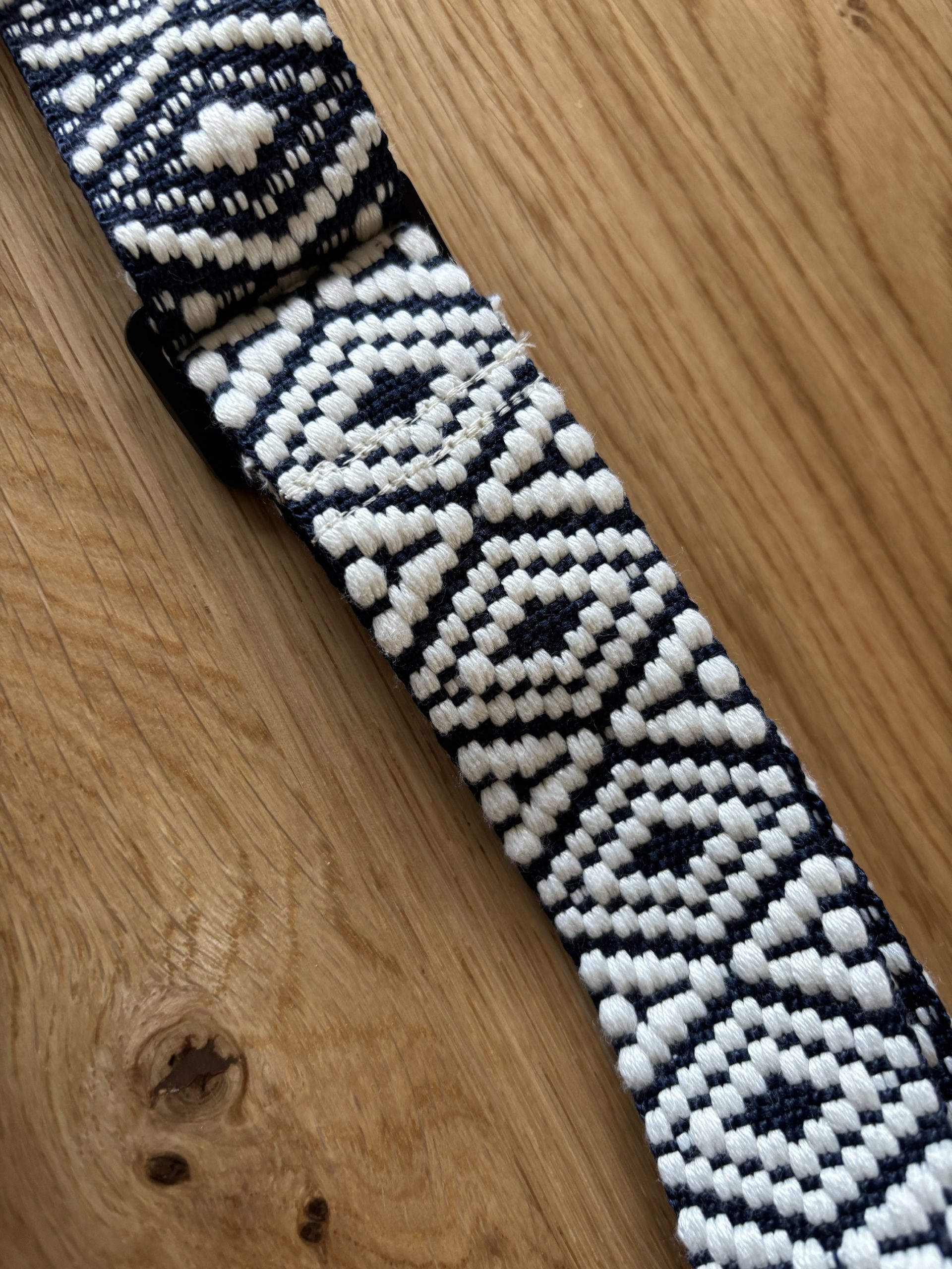 Sa sangle ethnique en coton, graphique et contrastée, vient casser la douceur du velours avec du caractère. Chaque détail a été choisi pour créer un équilibre parfait entre matière, couleur et personnalité.