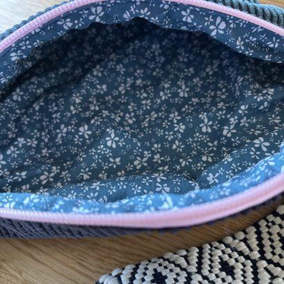 🎨 Velours bleu foncé, turquoise foncé et zip rose.
