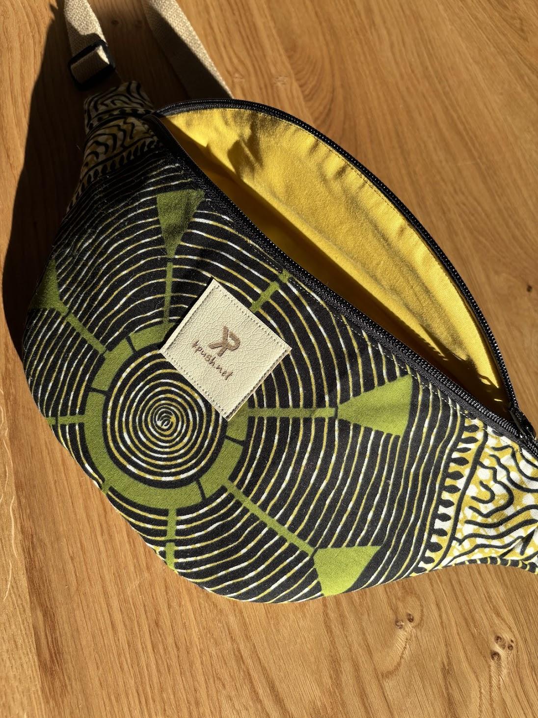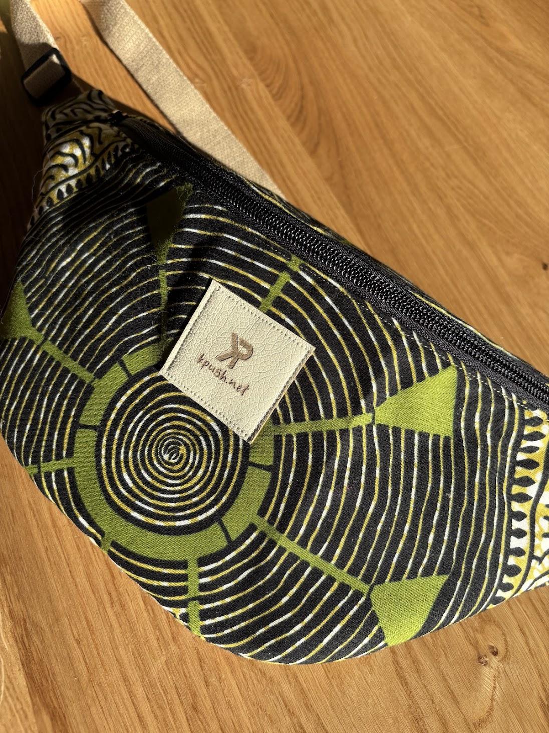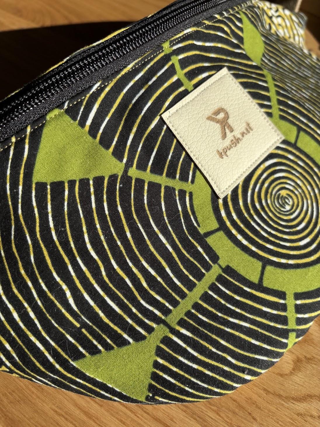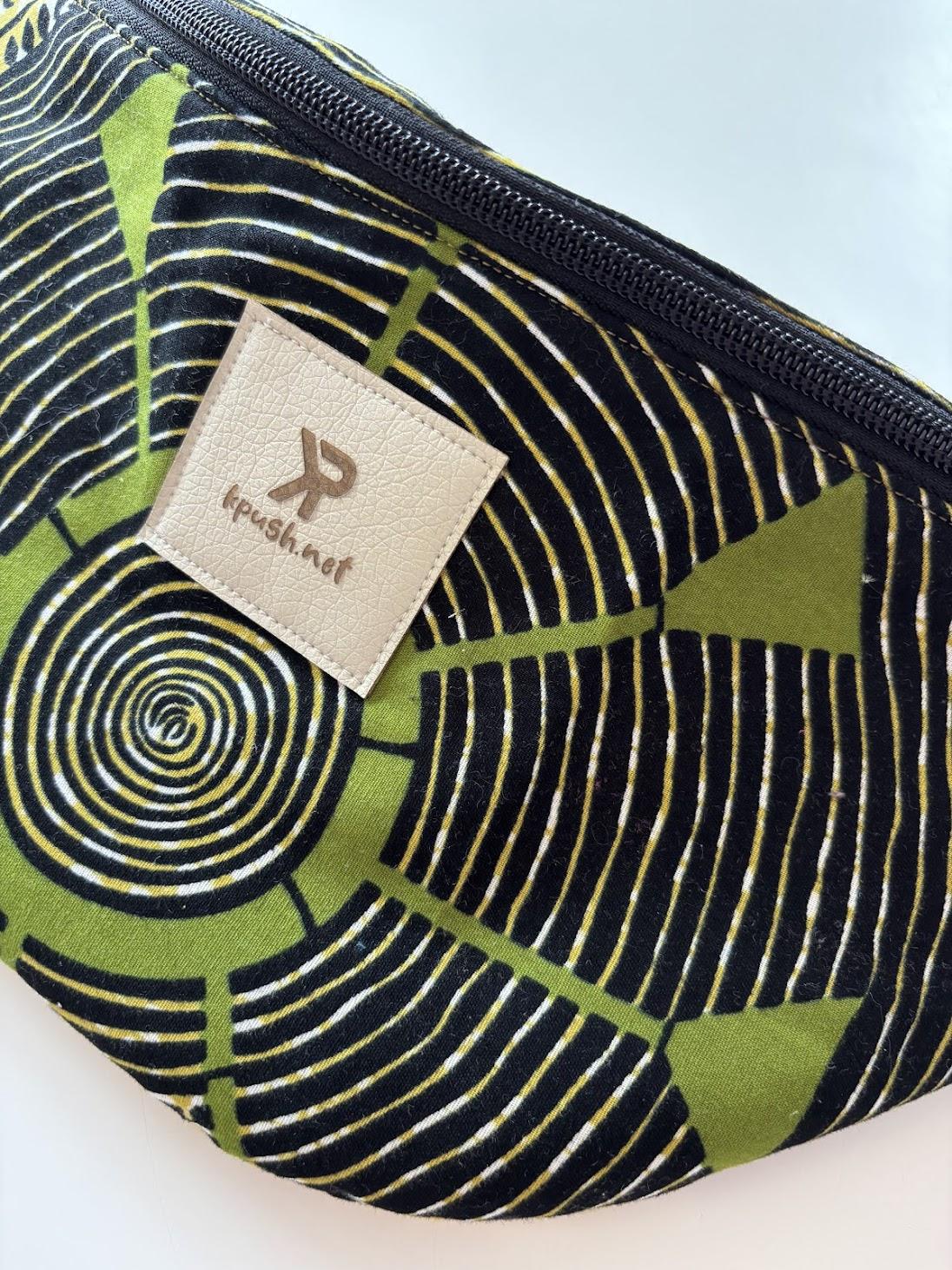 Avec son wax noir, vert et crème, ses lignes graphiques et ses spirales qui attirent l’œil, cette pièce a vraiment ce petit truc en plus. Elle est colorée, vivante, originale… bref, très KPush.