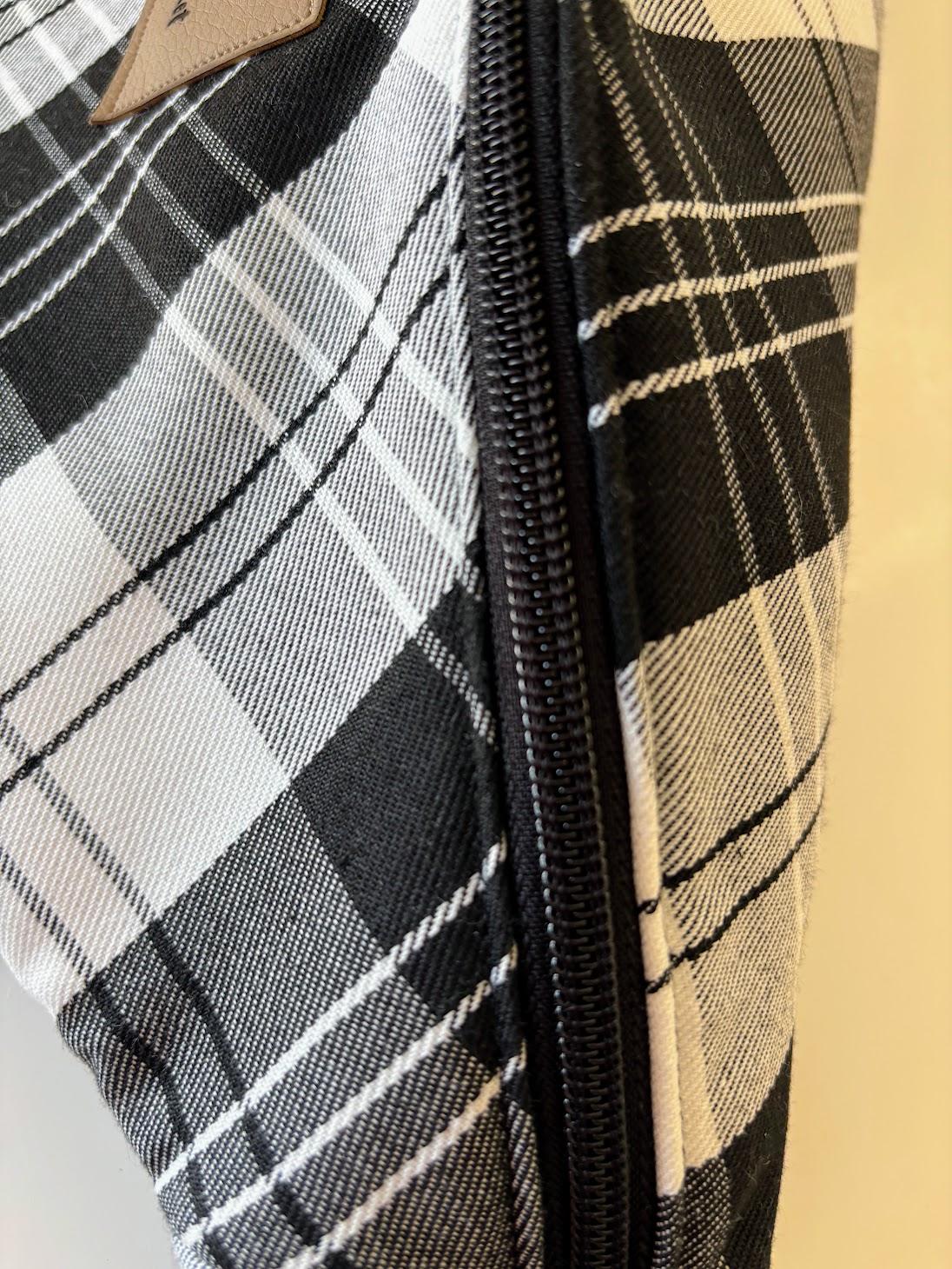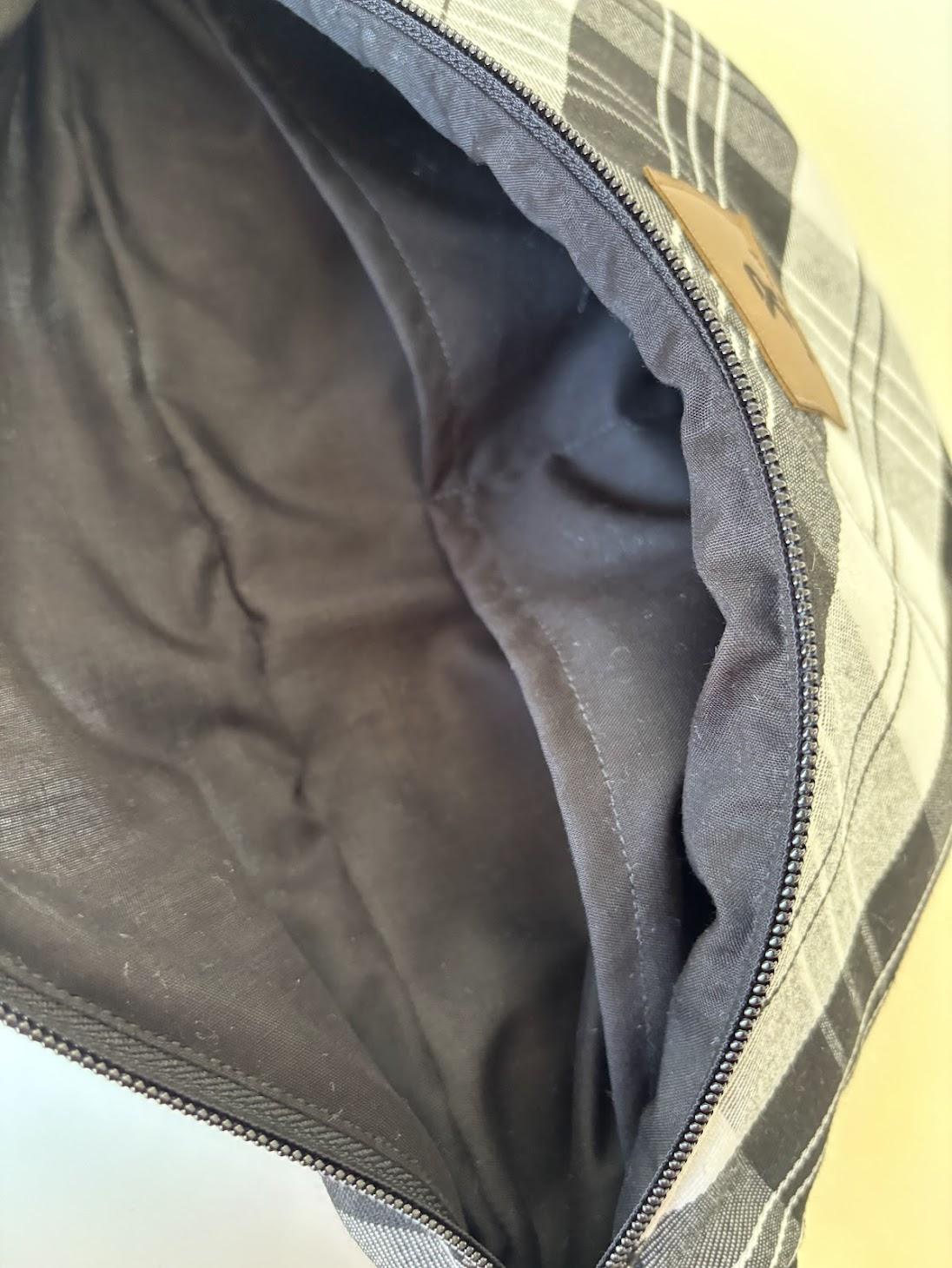 La banane est triplée (une couche entre l’extérieur en tartan et la doublure en coton) pour une meilleure tenue, ce qui lui permet de garder une belle forme même bien remplie (ou vide). Cela lui donne également une imperméabilité relative.