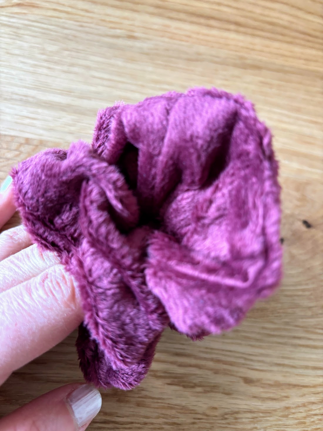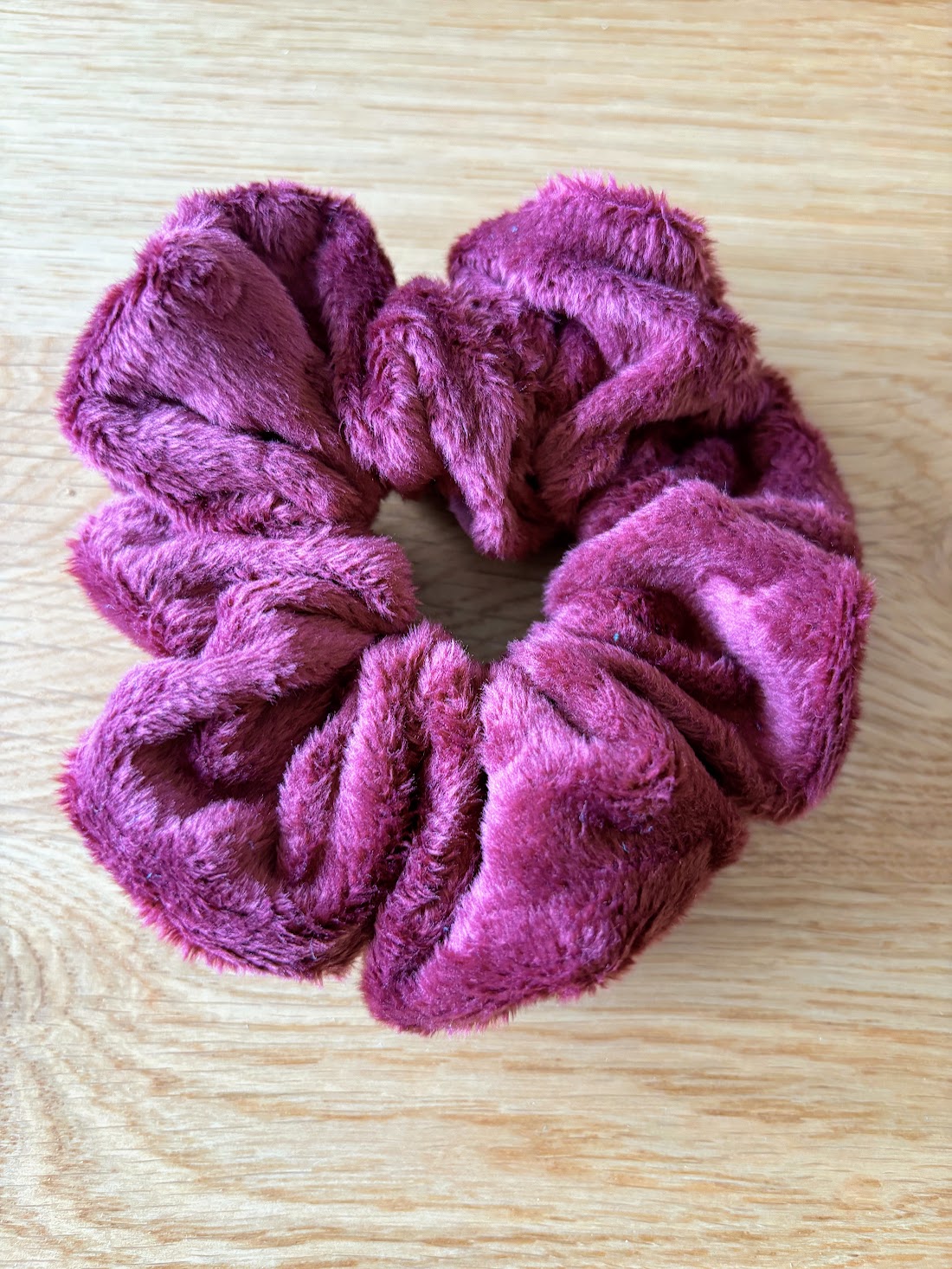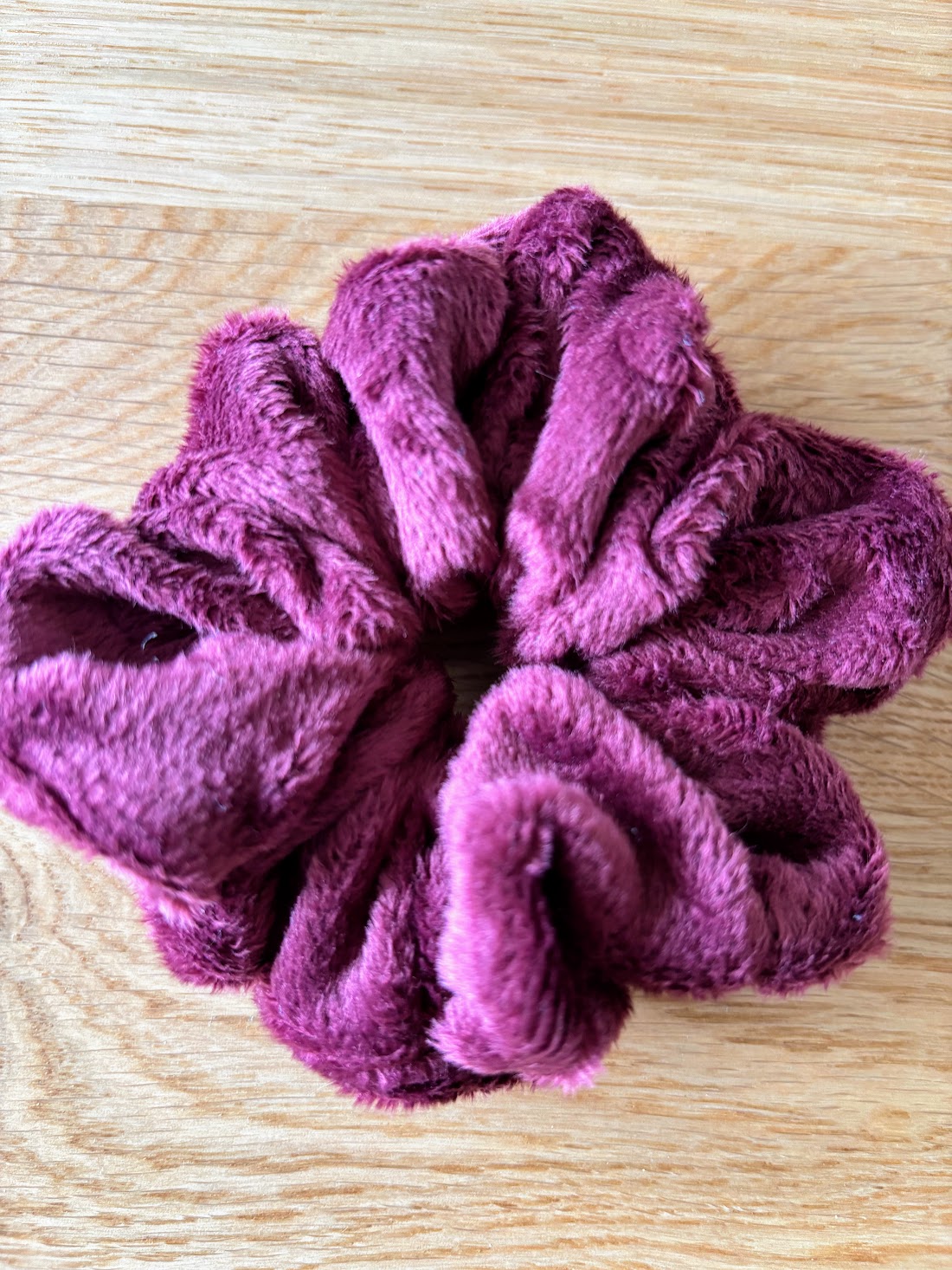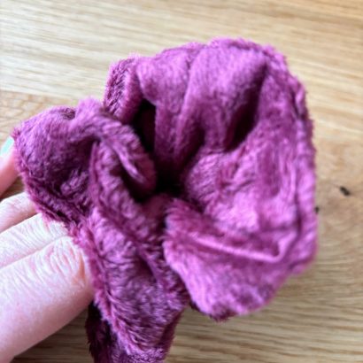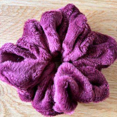 Ce chouchou en velours minky couleur prune tout doux est une vraie caresse pour les cheveux.
