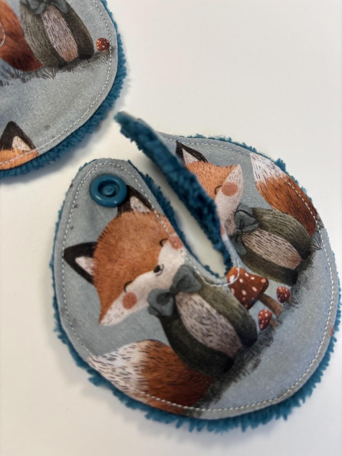 - Motif mignon de renards. Bambou oeko tex blanc. Pression couleur crème.