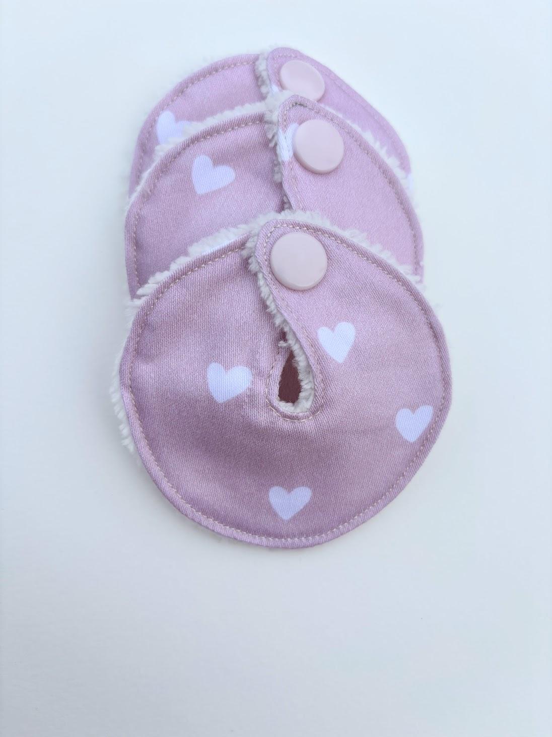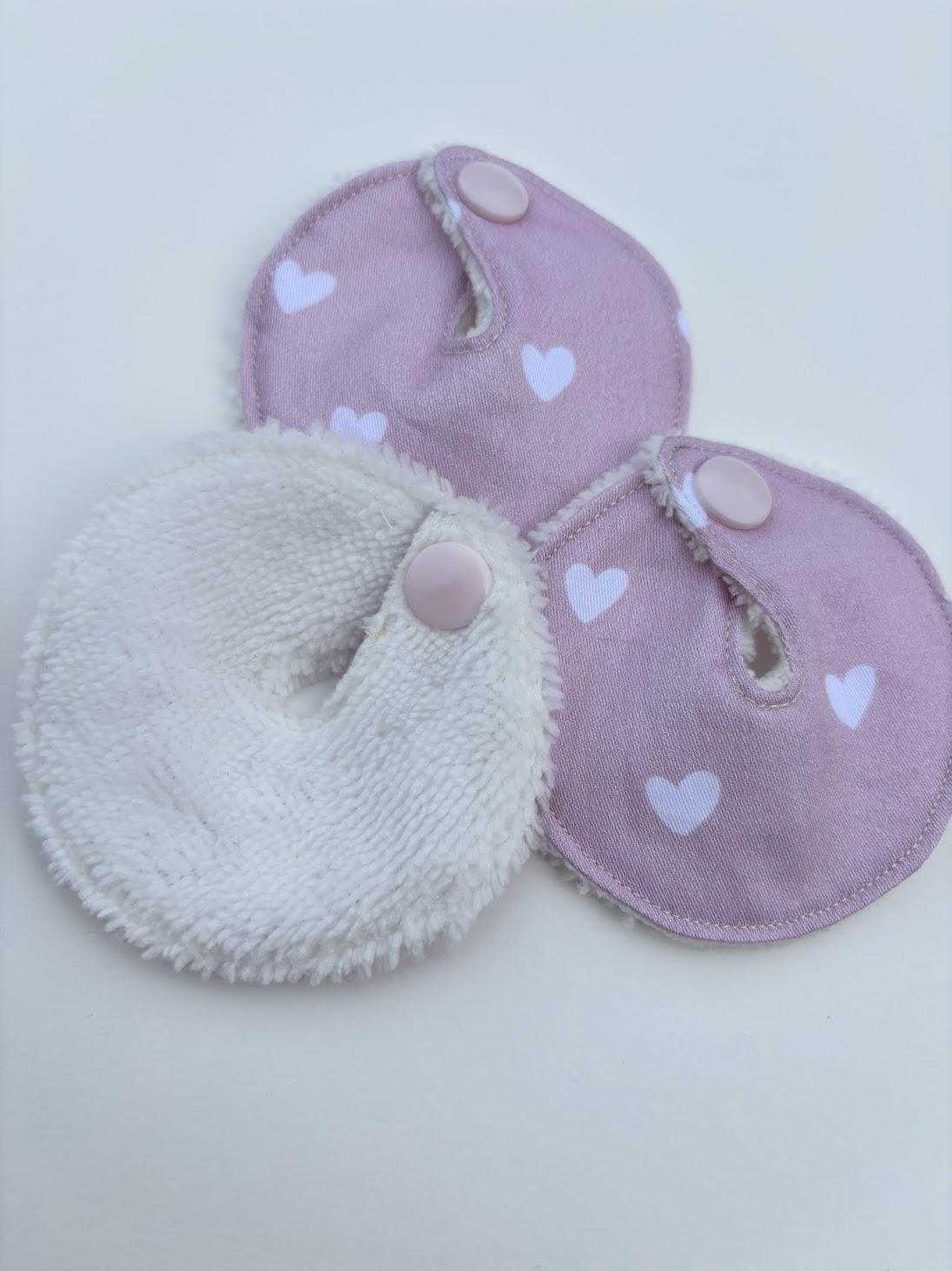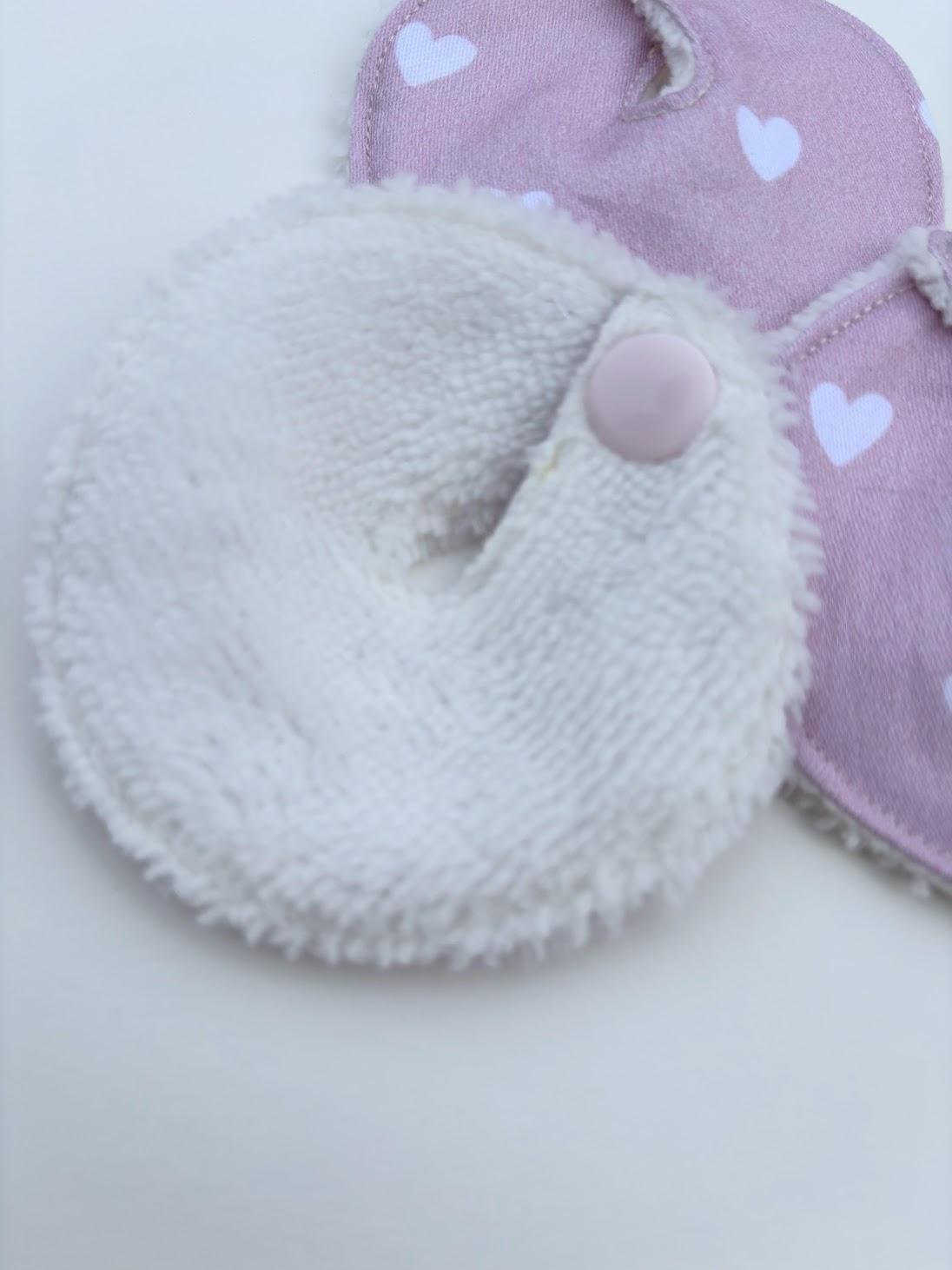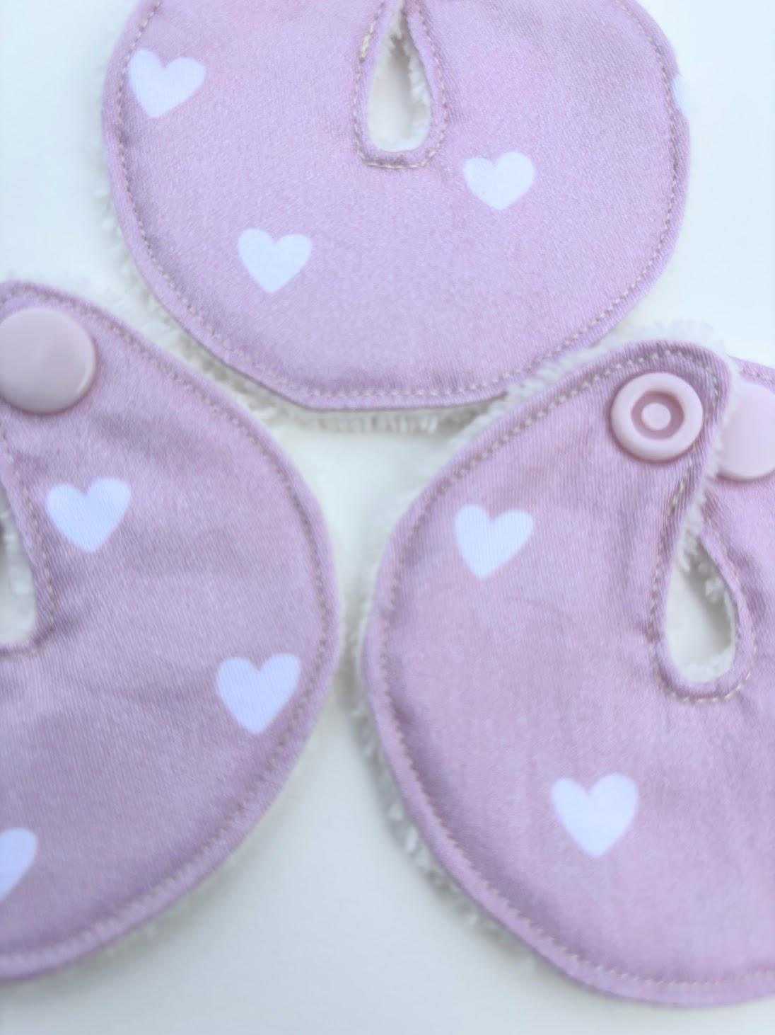 - Coton imprimé (face extérieure) petits coeurs blancs sur fond vieux rose