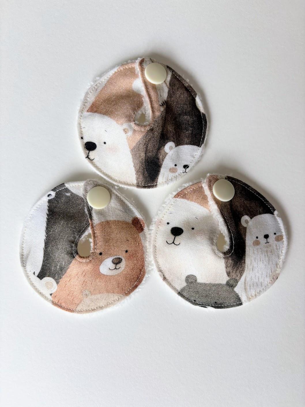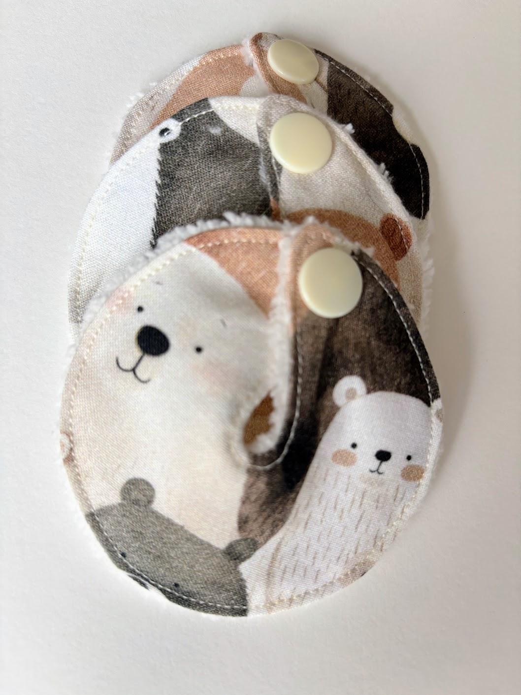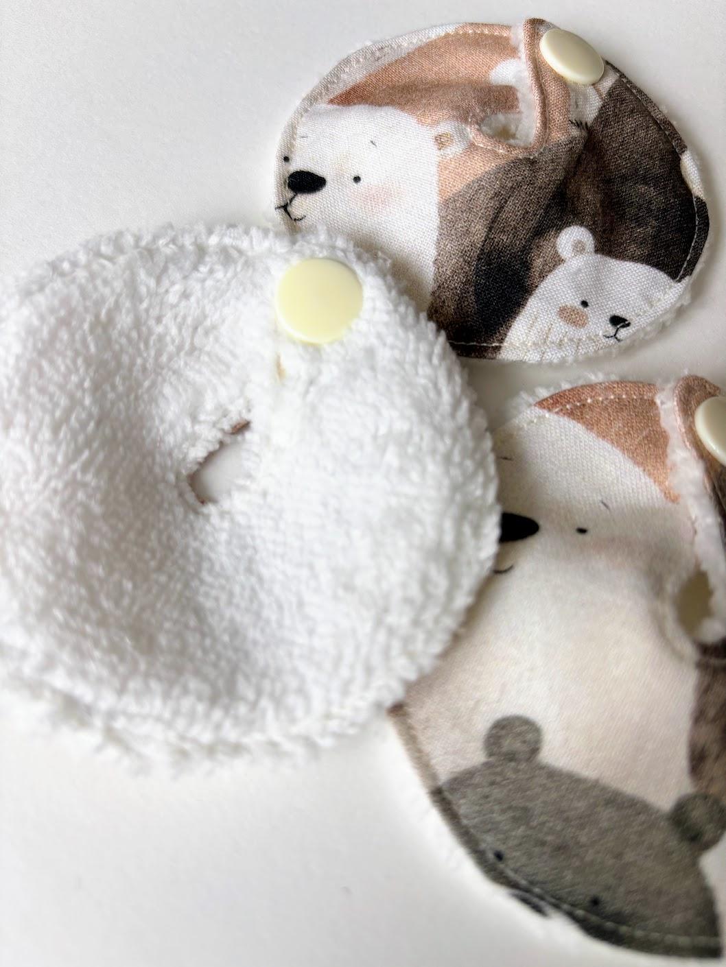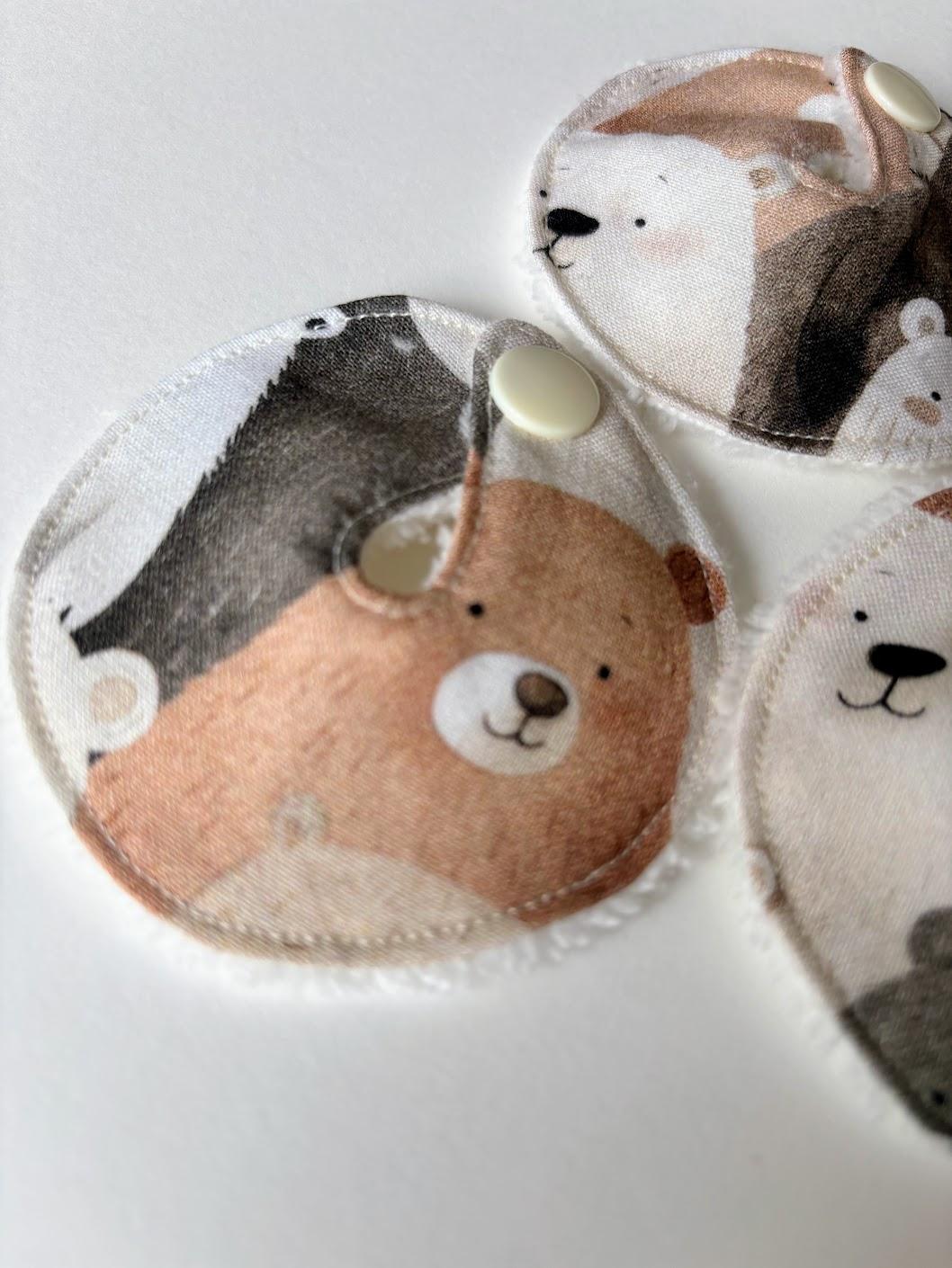 • Motif mignon d’oursons. Bambou oeko tex blanc. Pression couleur crème.
