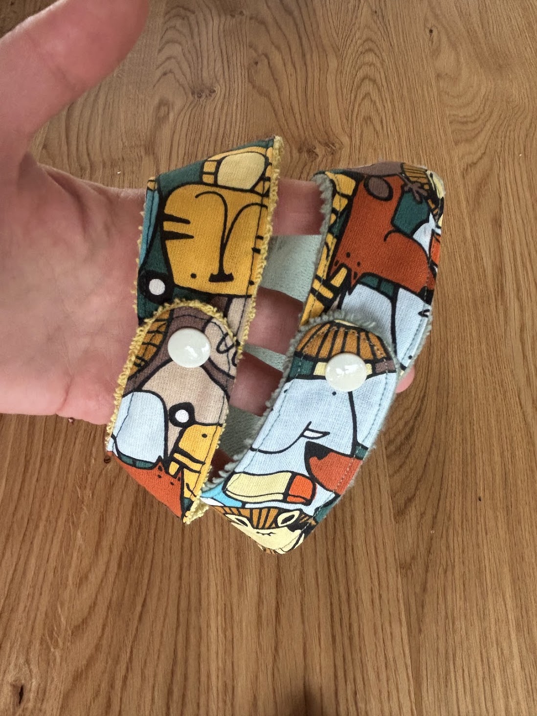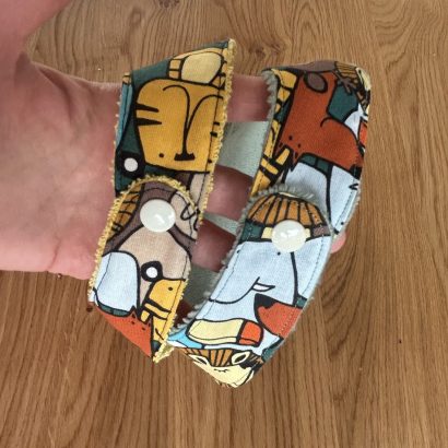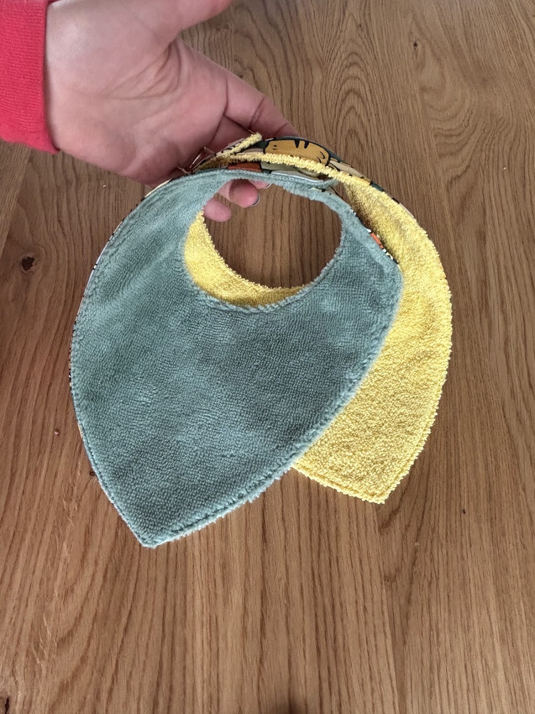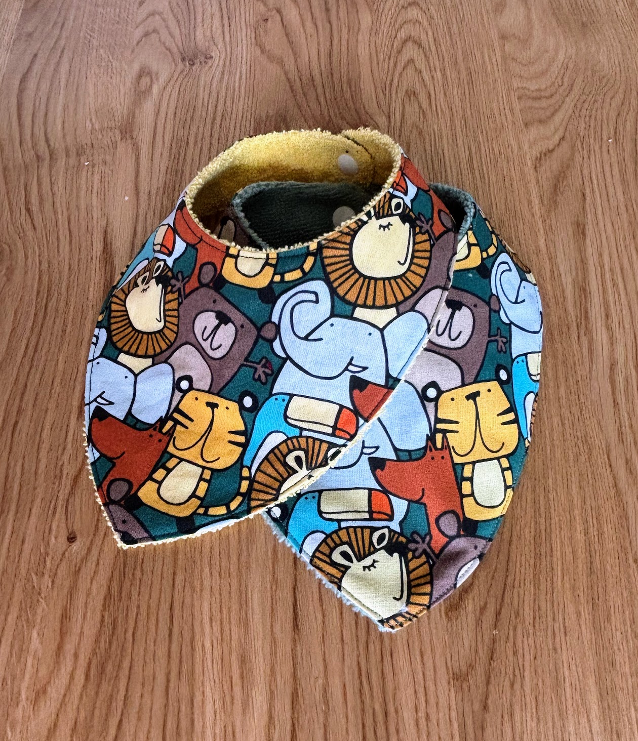 Chaque bandana est fait main, avec soin, et associe un tissu imprimé ludique à une doublure absorbante, pour s’adapter à tous les moments de la journée.